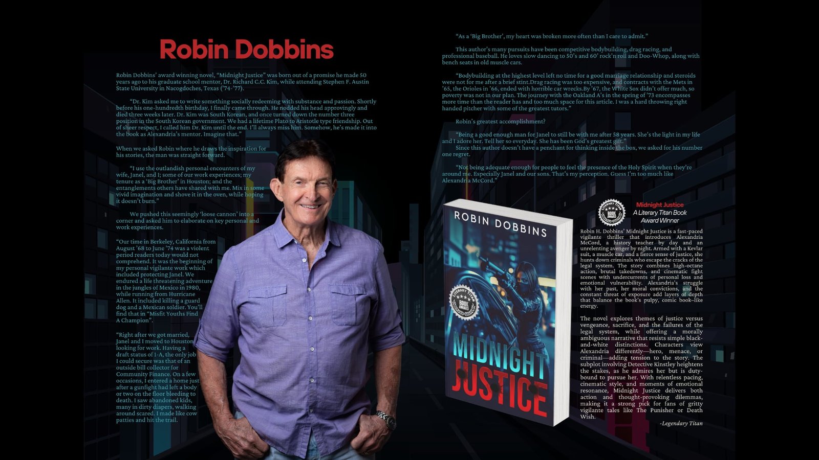 Robin is a native Texan who, in 1968, ventured to California with Janel, his wife of 57 years, to pursue football and baseball at the University of California at Berkeley. Disenchanted with the tumultuous atmosphere there, he entered California State University at Hayward, earning his BA in political science with a double minor in history and sociology. While in California, he became a competitive bodybuilder under the tutelage of the famous Jack LaLanne and Jack Dellinger (1956 Mr. Universe). After meeting NHRA HOF driver Cecil Yother, drag racing entered the picture. The car he special ordered in 1971 is the feature story in Mopar Collectors Guide (June 2023).